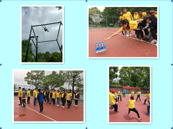 為期一天的拓展訓(xùn)練內(nèi)容包括“破冰起航”、“群龍取水”、“鼓動(dòng)人心”、“智力電網(wǎng)”、“高空跳桿”等活動(dòng)項(xiàng)目。在“群龍取水”比賽中,大家默契十足,合作精神展現(xiàn)的淋漓盡致,通過(guò)隊(duì)友的幫助,沖過(guò)重重阻礙,終于成功取水,比賽緊張,扣人心弦;在“鼓動(dòng)人心”比賽中,隊(duì)員們統(tǒng)一步調(diào),不斷嘗試、不斷總結(jié)、不斷進(jìn)步,團(tuán)隊(duì)合作精神貫穿始終;在“智力電網(wǎng)”比賽中,為了集體榮譽(yù),大家精確計(jì)算,合理謀劃,所有隊(duì)員不怕臟不怕累,都以十足的拼搏精神全力以赴,活動(dòng)場(chǎng)上口號(hào)聲、歡呼聲、吶喊聲、掌聲交織成一片;在“高空抓桿”比賽中,隊(duì)員們以最大的努力克服心里障礙、發(fā)掘自身潛力,冷靜面對(duì)、挑戰(zhàn)自我,深刻體會(huì)了團(tuán)隊(duì)協(xié)作、信任互助和自信的重要性,承受住壓力,戰(zhàn)勝了困難,用汗水書(shū)寫(xiě)了弘揚(yáng)五四的華彩樂(lè)章。