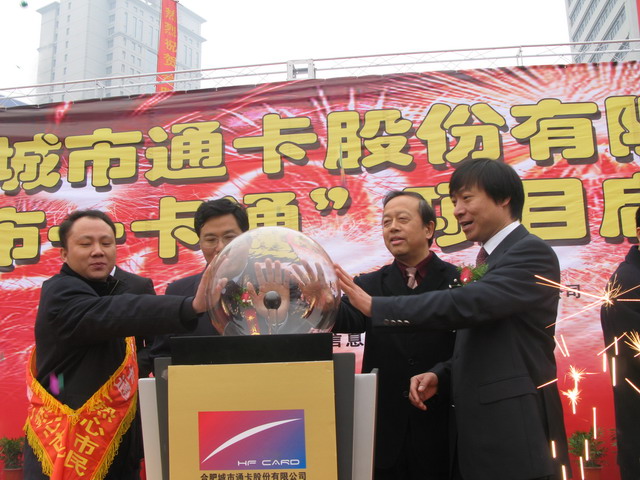 2007年12月18日上午,合肥城市通卡股份有限公司暨“城市一卡通”項目啟動儀式在合肥市市政府廣場隆重舉行。安徽省信息產(chǎn)業(yè)廳廳長賀凌、合肥市政協(xié)主席周富如、合肥市委副書記董昭禮、合肥市人大常委會常務(wù)副主任甄長琢、合肥市副市長江明、安徽省建設(shè)廳總工程師仲亞平及市直有關(guān)部門負責同志出席了啟動儀式。